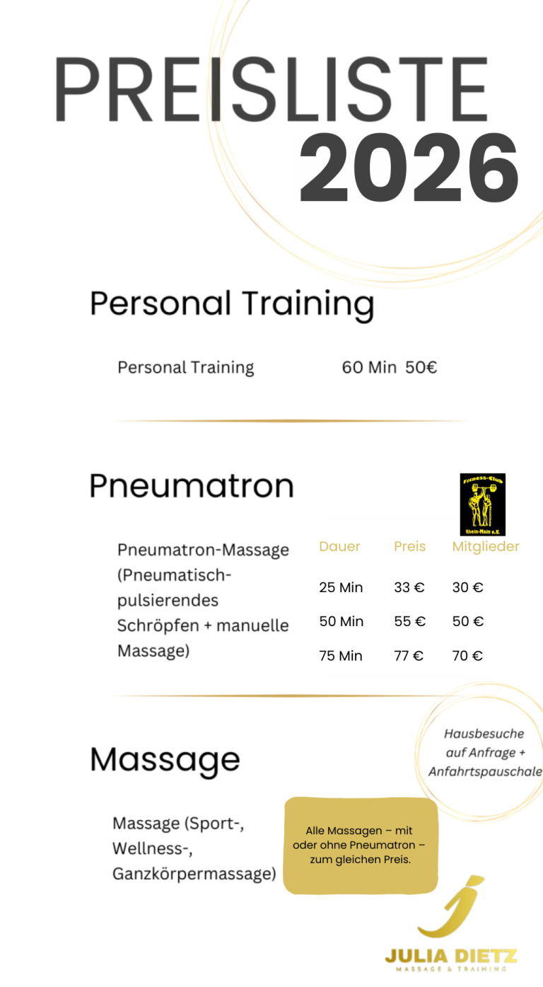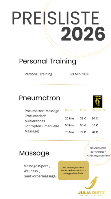 Ich biete allerdings auch Mobile Massage an und komme mit Massage-Liege + Pneumatron zu Dir nach Hause.